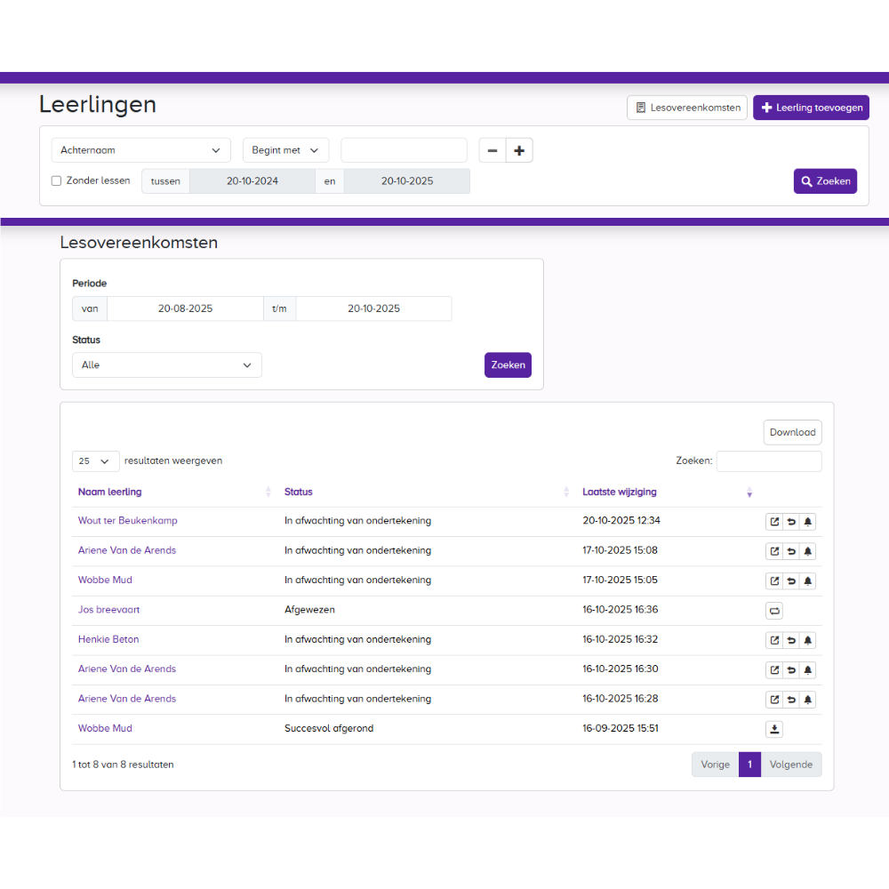 - Lesovereenkomsten digitaal laten ondertekenen door leerlingen of ouders