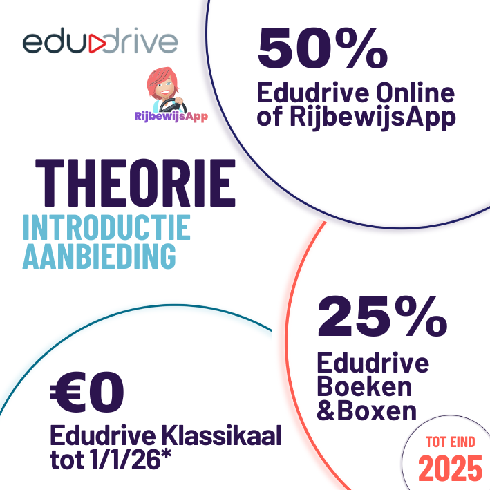 25% korting op de theorieboxen van Edudrive De theorieboxen zijn een combinatie van boek en online |