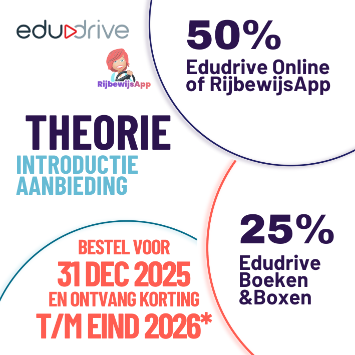 | 25% korting op de theorieboxen van Edudrive De theorieboxen zijn een combinatie van boek en online |
